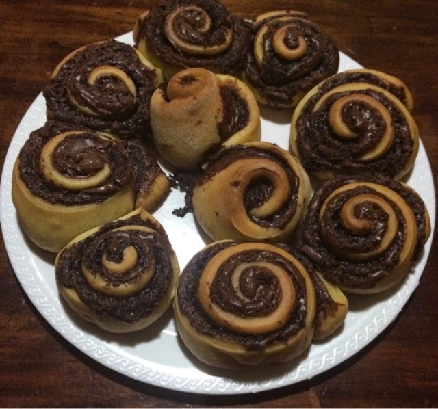 L'ho steso a circa 1 cm di spessore, coperto con abbondante Nutella e tagliato a strisce